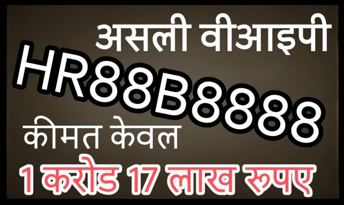 हरियाणा में गाड़ी के वीआईपी नंबर ने बना दिया रिकॉर्ड, ऑनलाइन नीलामी में ‘HR88B8888’ नंबर 1.17 करोड़ रुपये में बिका। इस नंबर के लिए 45 आवेदन आए थे, जिसका बेस प्राइस ₹50,000 था।