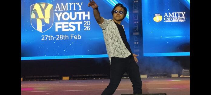एमिटी यूनिवर्सिटी, नोएडा के प्रतिष्ठित यूथ फेस्ट 2026 के पहले दिन मुम्बई से आए नवस्थापित एक्टर और स्क्रिप्ट राइटर, बॉलीवुड के प्रसिद्ध कोरियोग्राफर श्यामक डावर से प्रशिक्षित डान्सर, श्री अभिमन्यु श्रीवास्तव ( फिल्म NTR, मणिकर्णिका, I B 71, Baghi 4 , web series 9 hours fame)ने अपनी प्रभावशाली उपस्थिति दर्ज कराई। उन्होंने इस भव्य आयोजन में दो महत्वपूर्ण भूमिकाएँ निभाईं — एक निर्णायक (जज) के रूप में और दूसरी, लगभग 30,000 दर्शकों के समक्ष एक ऊर्जावान मंच प्रस्तुति देकर।