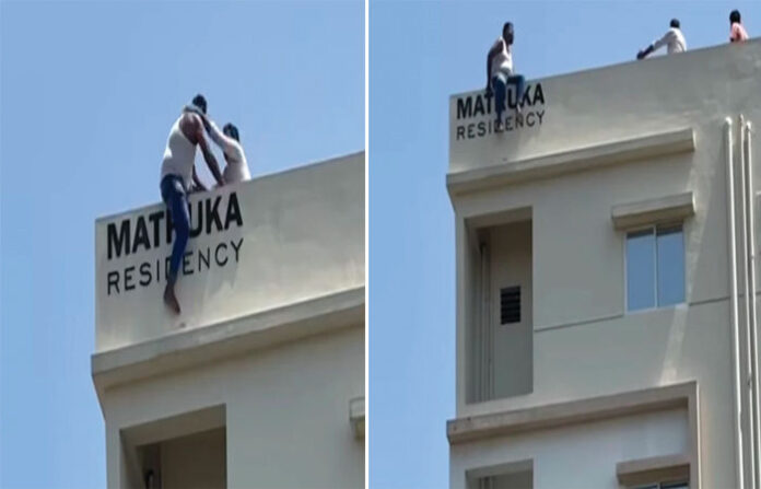 गुजरात के वड़ोदरा में एक युवक बिल्डिंग की छत पर मुंडेर पर पैर लटकाकर बैठ गया और आस पास के लोगों से कहने लगा कि पत्नी मुझे परेशान कर रही है, पास आए तो कूद जाऊंगा। मात्रिका रेजिडेंशल कॉम्प्लेक्स की छत पर चढकर युवक ने उसको समझने और बचाने के लिए इकठ्ठा हुए लोगों शोर मचाकर ये बात कही।