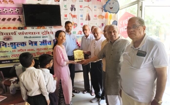 अग्रोहा विकास समिति, मुख्य शाखा, फिरोजाबाद द्वारा सेवा संस्थान सेठ विमल कुमार जैन धर्मार्थ समिति (ट्रामा सेंटर), फिरोजाबाद के सहयोग से सरस्वती शिशु मंदिर, गौशाला में विद्यार्थियों के स्वास्थ्य संरक्षण एवं जागरूकता के उद्देश्य से निःशुल्क नेत्र परीक्षण शिविर का आयोजन गुरुवार, 23 अप्रैल 2026 को सफलतापूर्वक संपन्न हुआ।